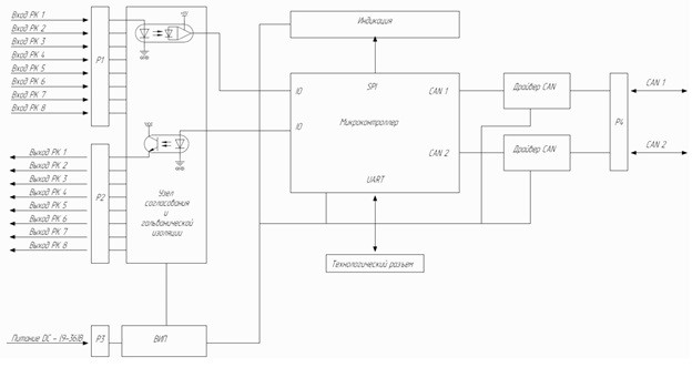 Модуль дискретного ввода-вывода CAN/CANOpen (на отечественных элементах)Модуль ввода-вывода дискретных сигналов CAN/CANOpen, представляет собой устройство для работы в жестких условиях эксплуатации и применяется для приема и выдачи разовых (дискретных) команд. Применяется в составе систем управления и сбора данных жесткого реального времени на основе сети CAN c использование протокола CANopen (профиль DS401). Устройство выполнено полностью на отечественных комплектующих. Предлагаемый модуль совместим с IO Remote - СANopen DS-401. Устройство может подключаться одновременно к двум CAN сетям, что позволяет организовать отказоустойчивую систему с резервированием каналов связи. Внешний вид устройства: